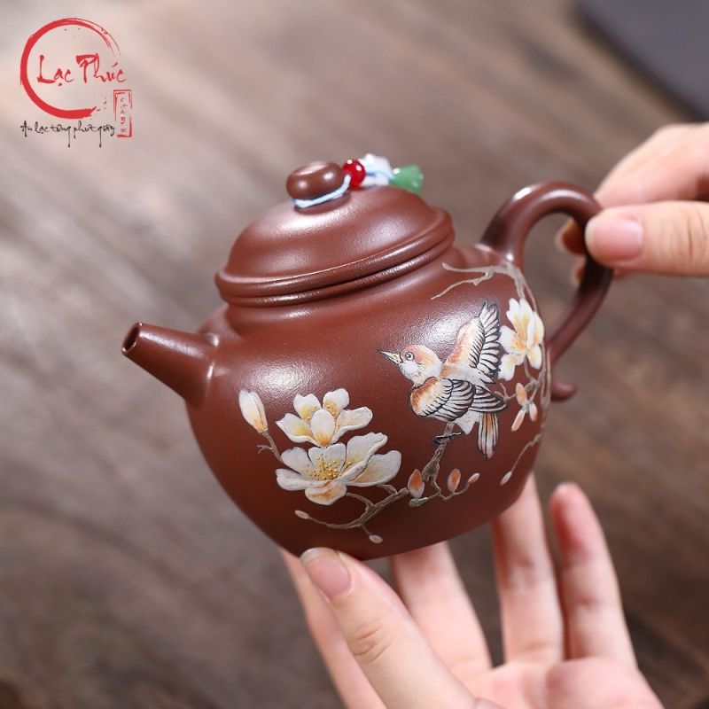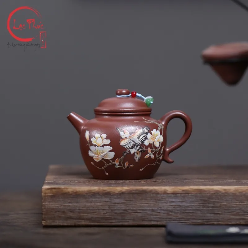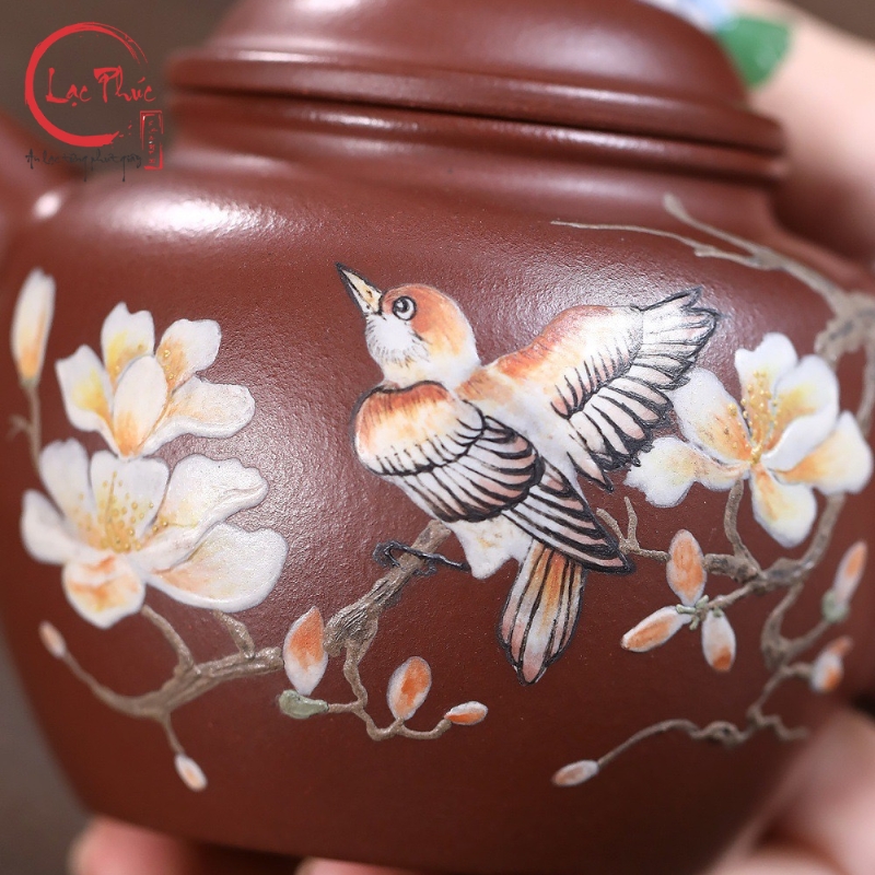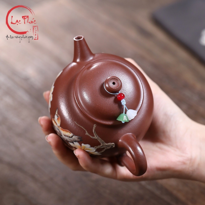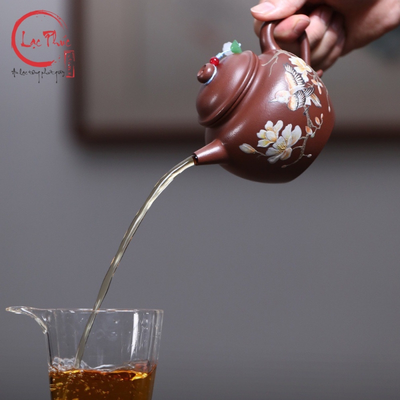 Ấm tử sa trúc đoạn tử gia nê vẽ hạc 220ml ATS489-1 là mẫu ấm mang tinh thần thanh cao của hình tượng trúc kết hợp nét an nhiên của chim hạc trong mỹ học trà đạo. Dáng trúc đoạn khỏe khoắn, thân ấm cân đối tạo cảm giác chắc tay khi rót. Nền đất tử gia nê nâu trầm làm nổi bật họa tiết hạc vẽ tay tinh tế, bố cục thoáng đạt, gợi sự trường thọ và tĩnh tại. Sản phẩm được Hội quán Lạc Phúc tuyển chọn và nhập khẩu trực tiếp từ Trung Quốc, phù hợp cho người yêu trà chuộng vẻ đẹp mộc mạc nhưng giàu ý nghĩa.