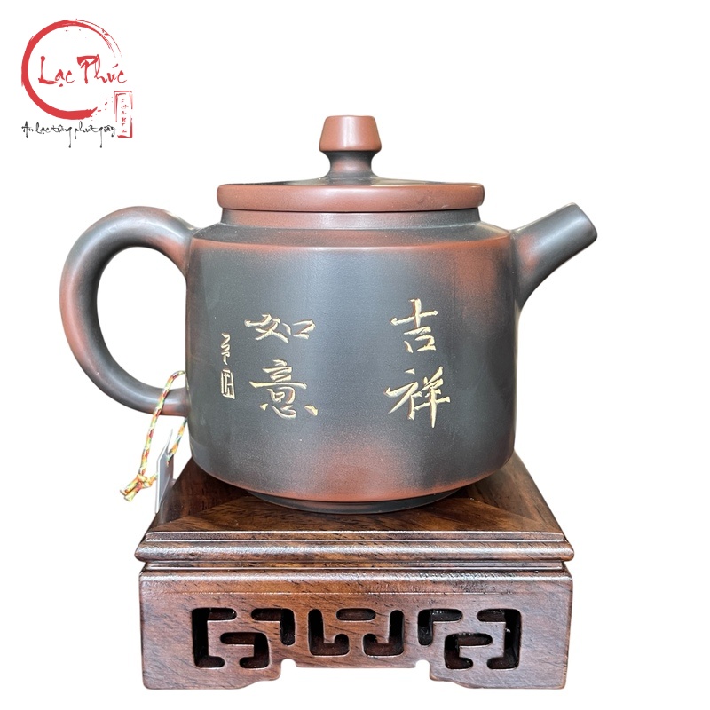 Ấm Tử Sa Đức Chung Khắc Đại Cát Đại Lợi Đẹp 240ml ATC114-1 là mẫu ấm mang đậm ý nghĩa phong thủy và tinh thần trà đạo thanh tịnh. Dáng Đức Chung được tạo hình vững chãi, mang nét trang nhã và cổ điển, tượng trưng cho sự an hòa và thịnh vượng. Trên thân ấm, nghệ nhân khắc tay dòng chữ Đại Cát Đại Lợi tinh tế, thể hiện lời chúc may mắn và thuận lợi. Sản phẩm do Hội Quán Lạc Phúc tuyển chọn kỹ lưỡng, vừa có giá trị thẩm mỹ vừa là món quà ý nghĩa dành cho người yêu trà.