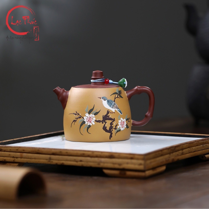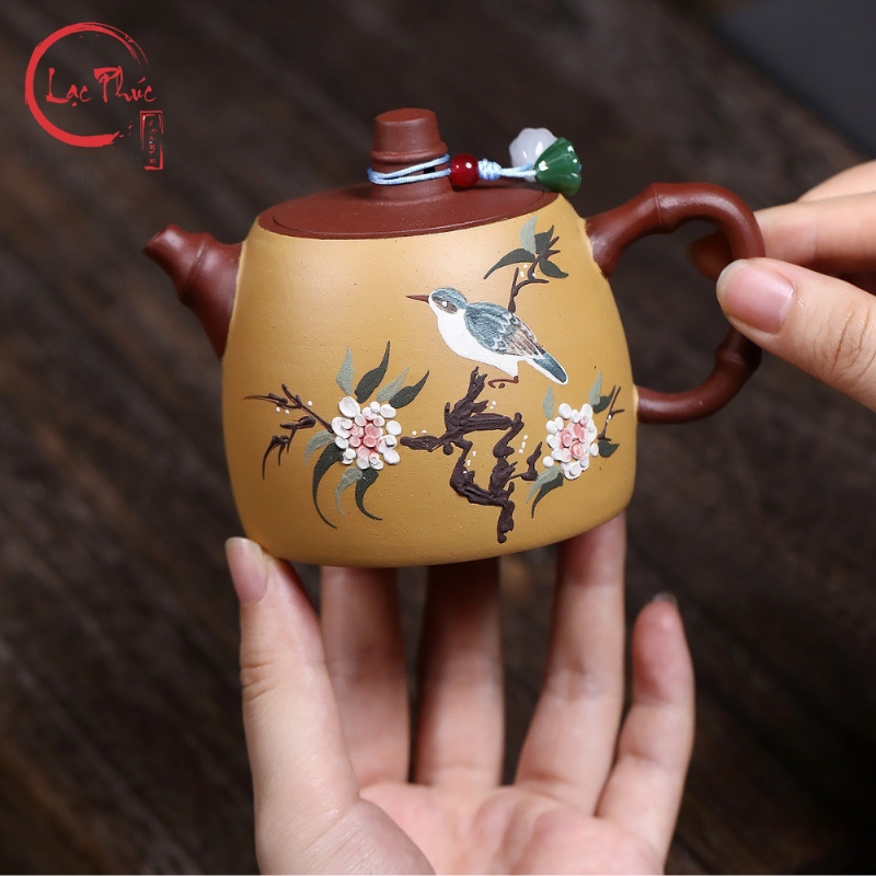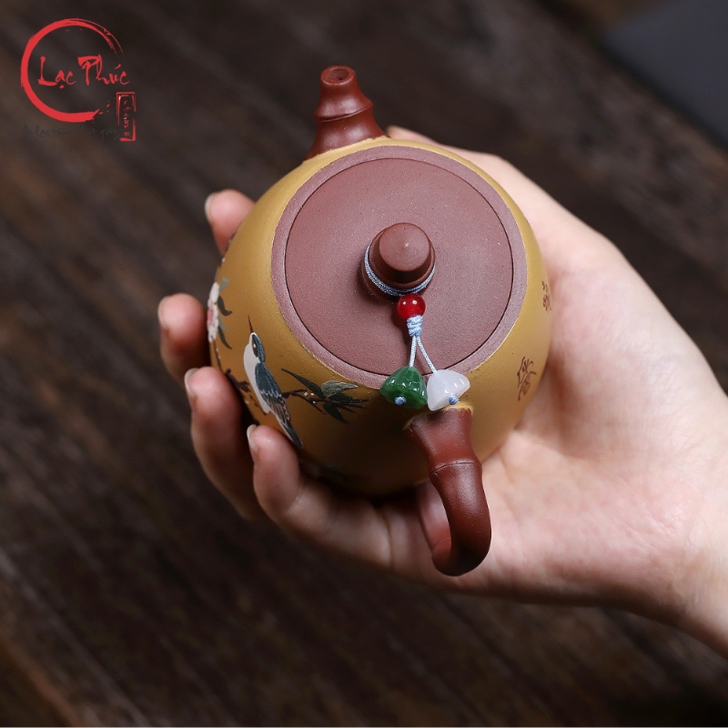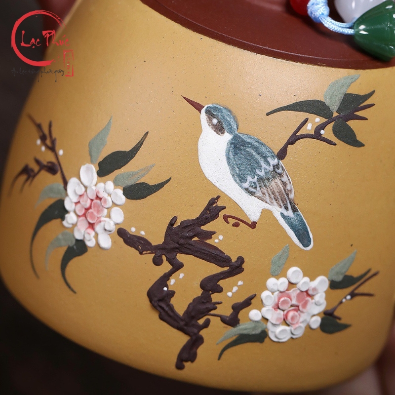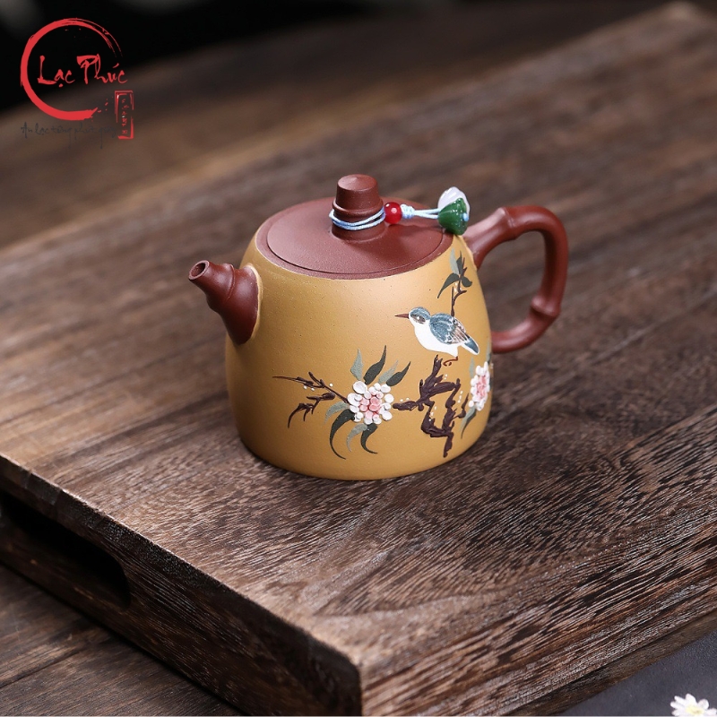Ấm tử sa hán đạc tử gia nê vẽ chim đẹp 200ml ATS483-5 gây ấn tượng bởi dáng hán đạc cổ điển, thân ấm tròn thấp tạo cảm giác chắc tay và cân đối. Bề mặt ấm được phối hai tông đất hài hòa, nổi bật với họa tiết chim đậu cành hoa vẽ tay tinh tế, bố cục sinh động và giàu chất thi họa. Tổng thể mang vẻ đẹp thanh nhã, nhẹ nhàng, phù hợp với không gian thưởng trà tĩnh tại.