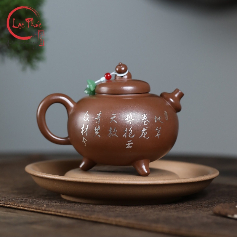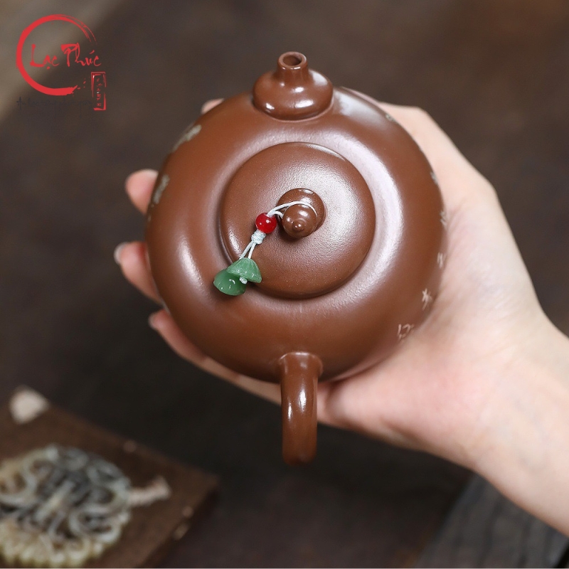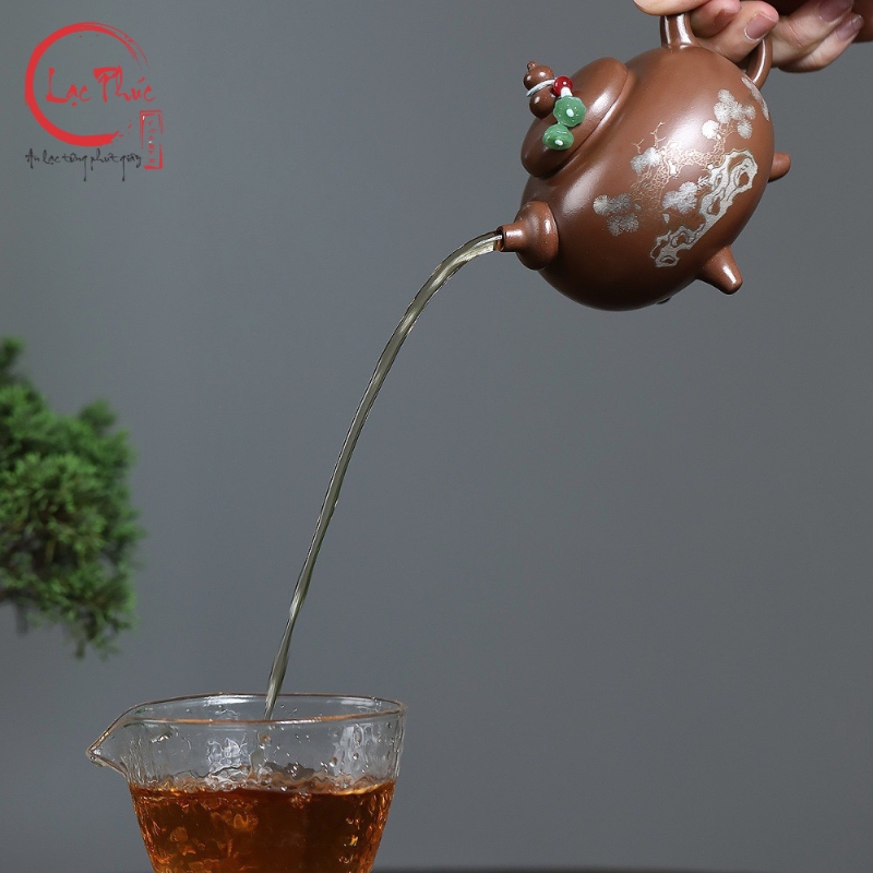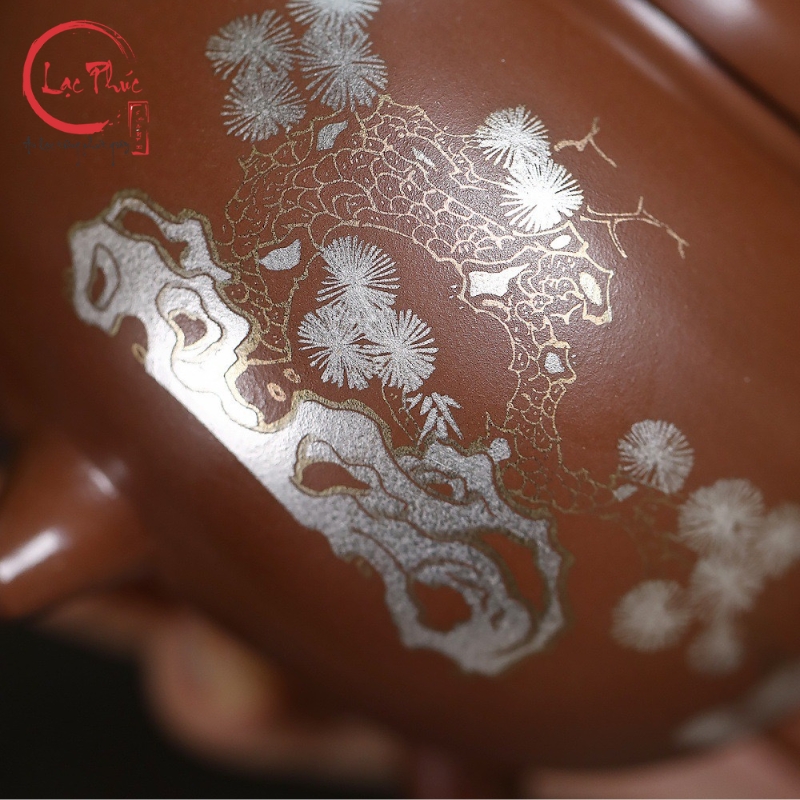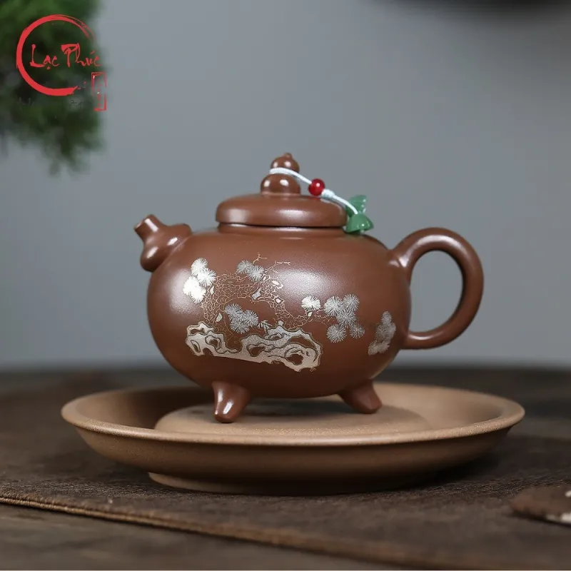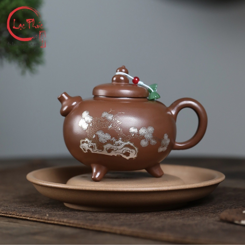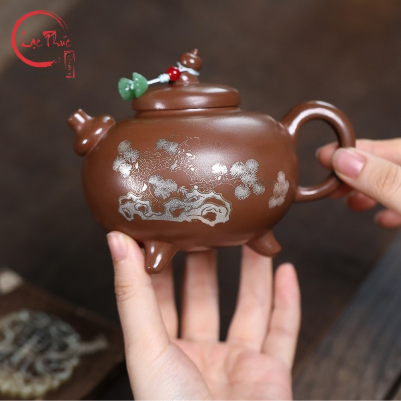 Ấm tử sa hồ lô 3 chân tử gia nê vẽ lão tùng 240ml ATS485-2 là mẫu ấm mang đậm tinh thần cổ điển và khí chất trầm ổn trong nghệ thuật trà đạo. Dáng hồ lô kết hợp ba chân tạo thế đứng vững chắc, thân ấm tròn đầy, cân đối, mang ý nghĩa phúc khí và viên mãn. Họa tiết lão tùng vẽ tay trên nền đất tử gia nê nâu ấm thể hiện sự bền bỉ, trường thọ và tĩnh tại. Sản phẩm được Hội quán Lạc Phúc tuyển chọn và nhập khẩu trực tiếp từ Trung Quốc, phù hợp cho người yêu trà thưởng thức và sưu tầm.