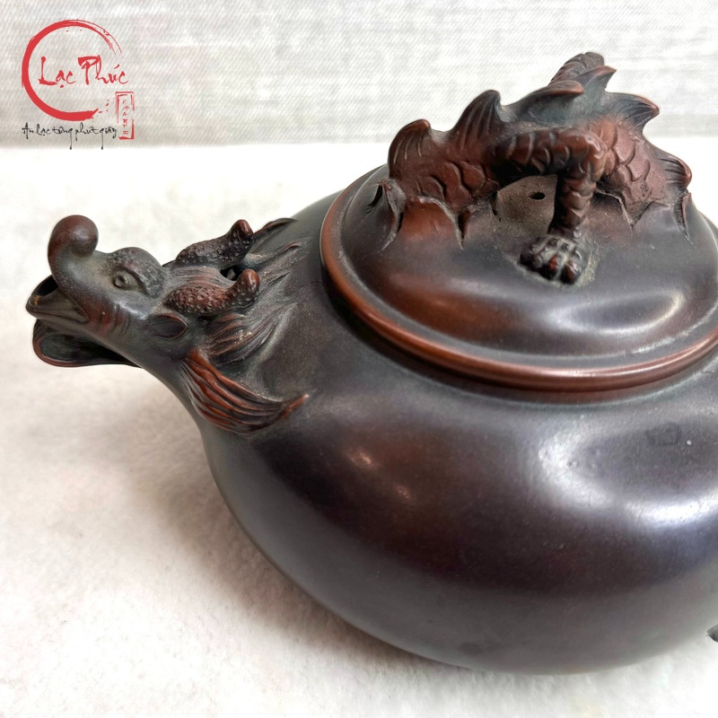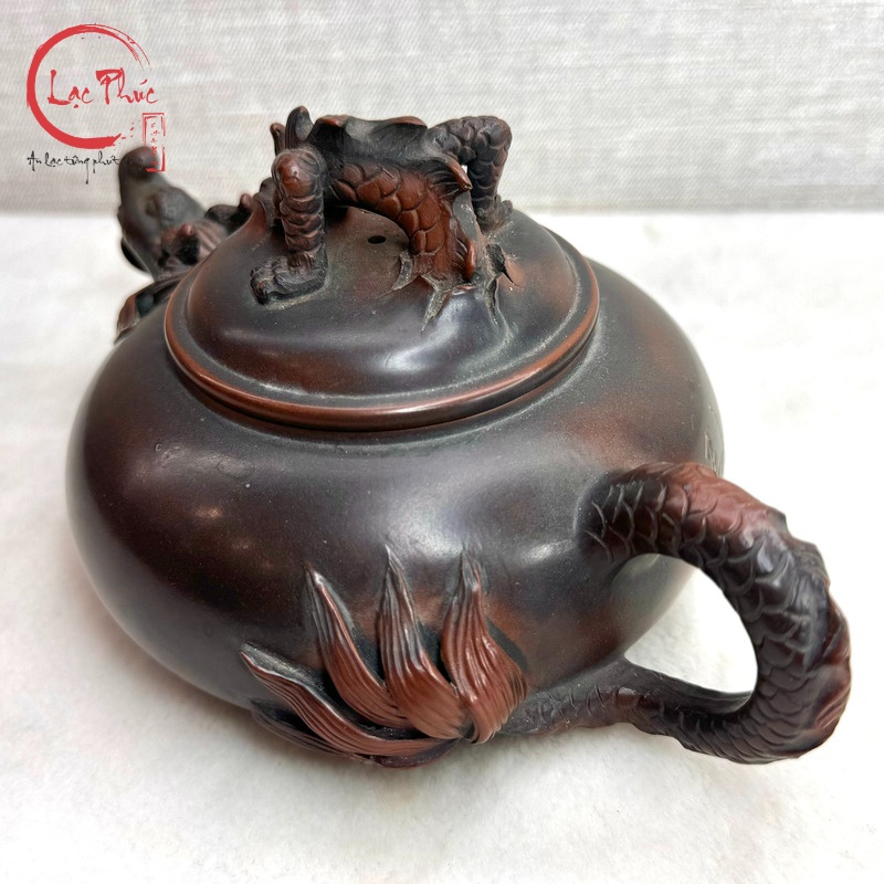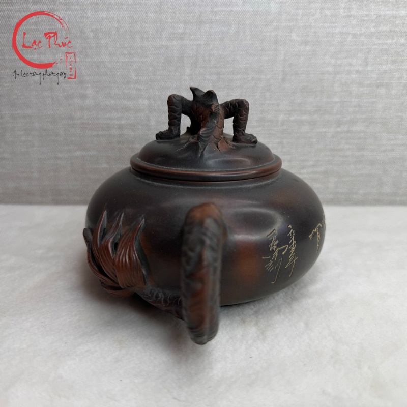 Ấm Tử Sa Long Phục Thiên Hạ Cao Cấp 350ml ATC128 là tuyệt phẩm thể hiện quyền uy và đẳng cấp của nghệ thuật gốm tử sa truyền thống. Dáng ấm bề thế, thân khắc nổi hình Long Phục Thiên Hạ tượng trưng cho sức mạnh, phú quý và thịnh vượng. Mỗi chi tiết được nghệ nhân chạm khắc tỉ mỉ bằng tay, thể hiện tinh thần dũng mãnh và tinh tế. Chất đất tử sa nguyên khoáng tự nhiên giúp ấm có khả năng giữ nhiệt cao, làm trà đậm vị và bền hương. Sản phẩm được Hội Quán Lạc Phúc tuyển chọn dành cho người yêu trà đạo và sưu tầm nghệ nhân cao cấp.