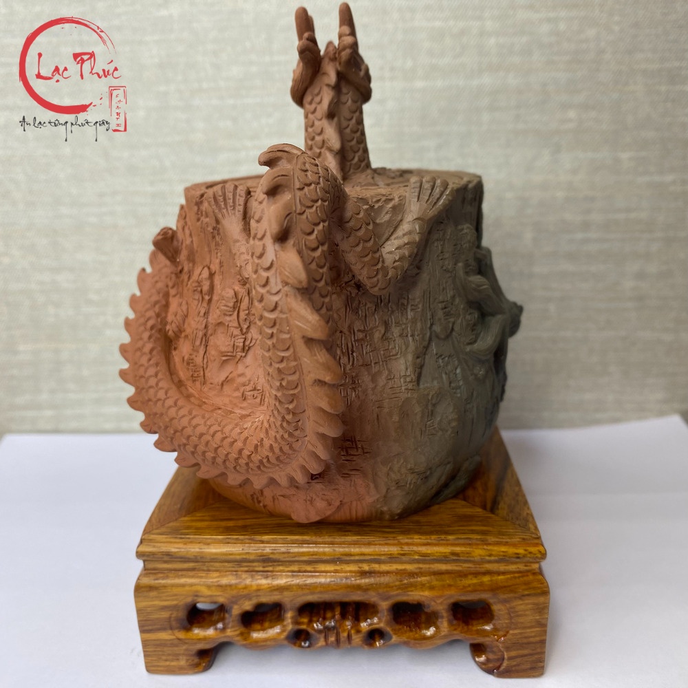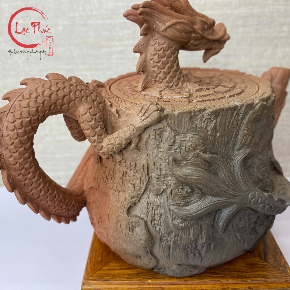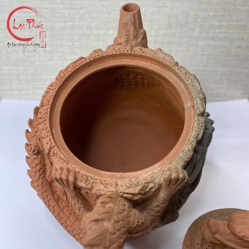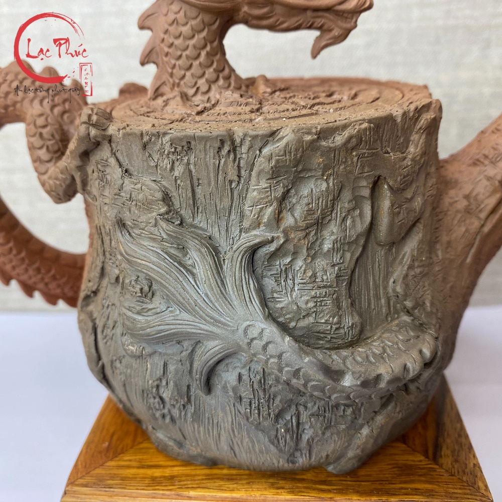 Ấm Tử Sa Nê Hưng Long Ẩn Hỏa Biến Cao Cấp 350ml ATC129 là tác phẩm hội tụ tinh hoa đất – lửa – nghệ nhân, mang đến vẻ đẹp độc bản mà chỉ kỹ thuật hỏa biến Nê Hưng mới tạo nên. Bề mặt ấm chuyển màu tự nhiên qua quá trình nung lửa mạnh giúp mỗi chiếc mang sắc độ riêng biệt, không trùng lặp. Dáng ấm mạnh mẽ kết hợp họa tiết Long Ẩn thể hiện sự uy nghi và thịnh vượng trong phong thủy. Được chế tác thủ công toàn bộ bởi nghệ nhân có tay nghề cao, sản phẩm do Hội Quán Lạc Phúc tuyển chọn dành cho người yêu trà đạo và sưu tầm tử sa cao cấp.