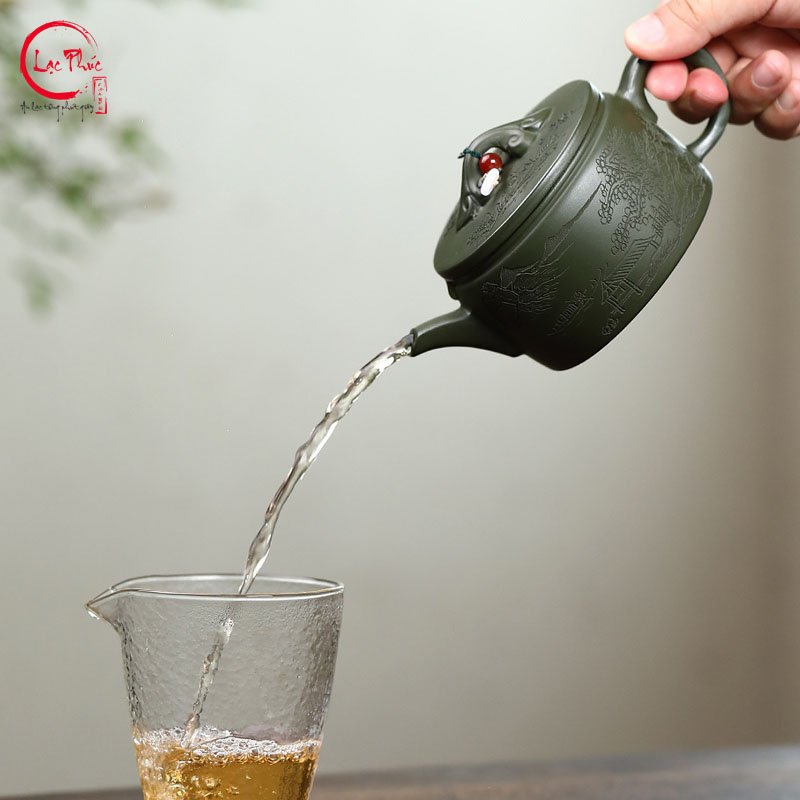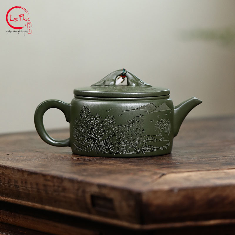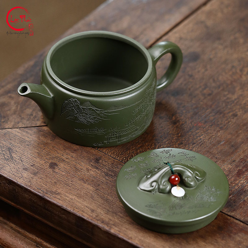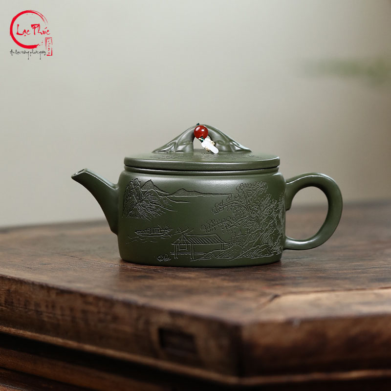Ấm tử sa như ý hán ngoã khắc sơn thuỷ đẹp khoáng đại hồng bào 180ml ATS168