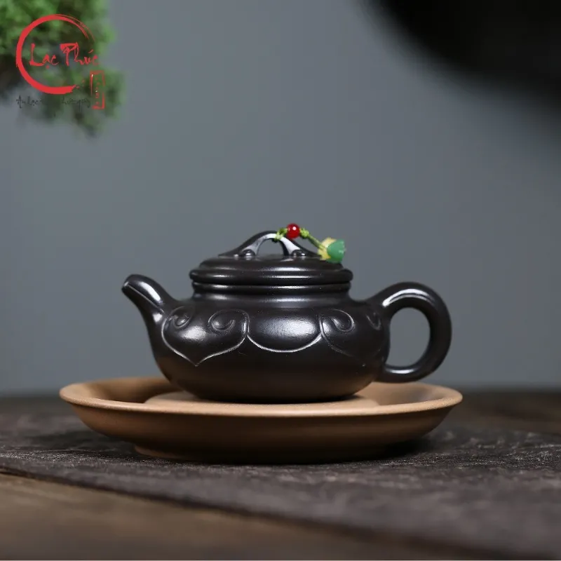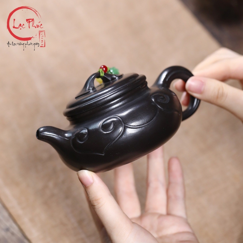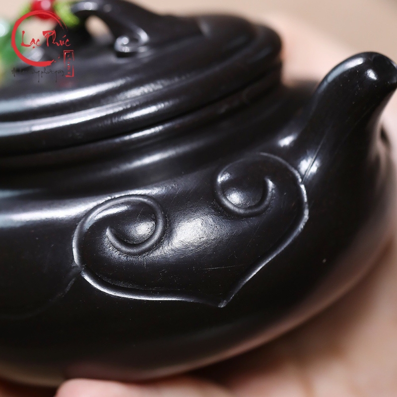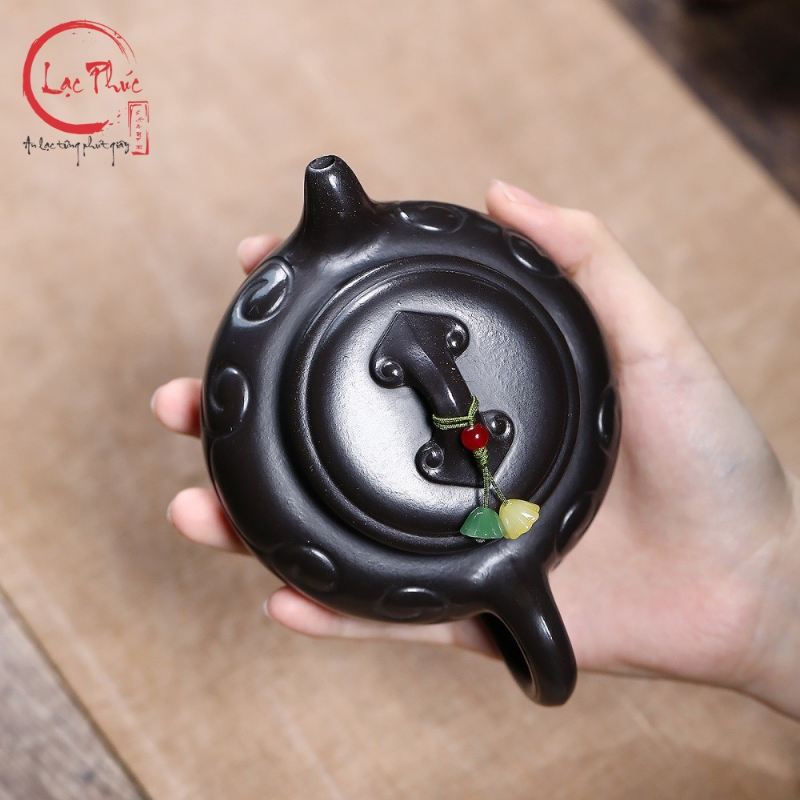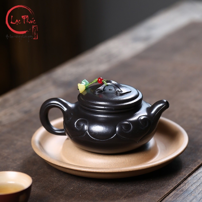 Ấm tử sa phỏng cổ như ý hắc nê 220ml ATS293-2 là mẫu ấm mang phong vị cổ điển, lấy cảm hứng từ các dáng ấm truyền thống với họa tiết như ý biểu trưng cho cát tường và viên mãn. Chất hắc nê tử sa cho sắc đen trầm sâu, bề mặt mịn và đanh chắc, tạo cảm giác vững tay khi sử dụng. Từng đường tạo hình được hoàn thiện thủ công tỉ mỉ, mang đến tổng thể hài hòa giữa công năng và thẩm mỹ. Đây là lựa chọn phù hợp cho người yêu trà yêu thích vẻ đẹp phỏng cổ và sự ổn định khi pha trà, được Hội Quán Lạc Phúc tuyển chọn.