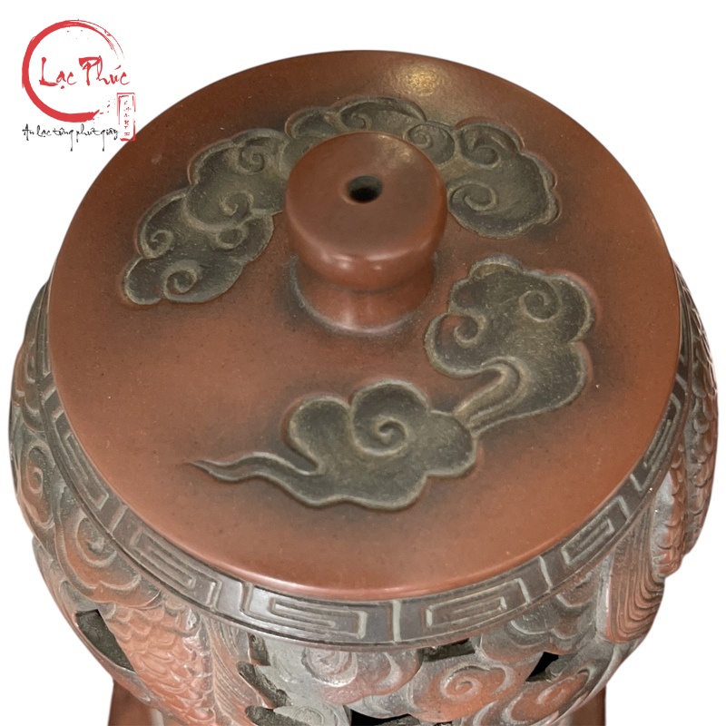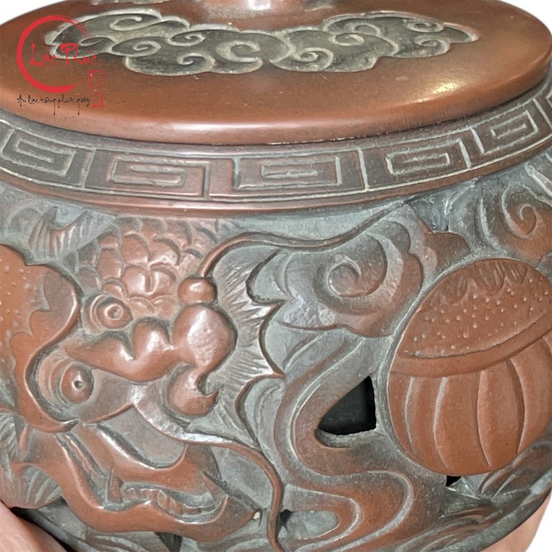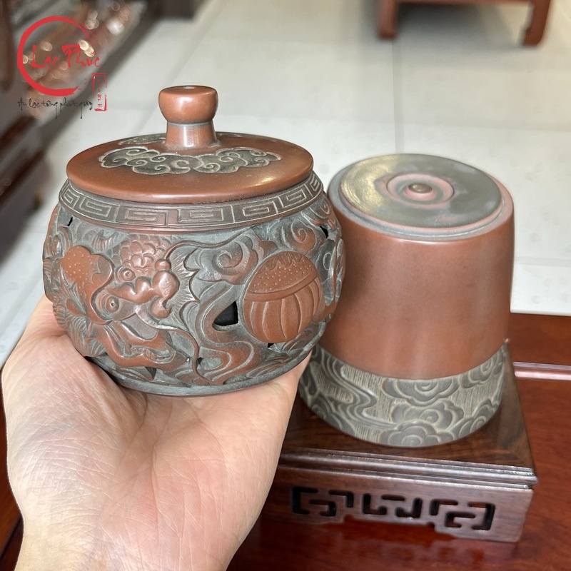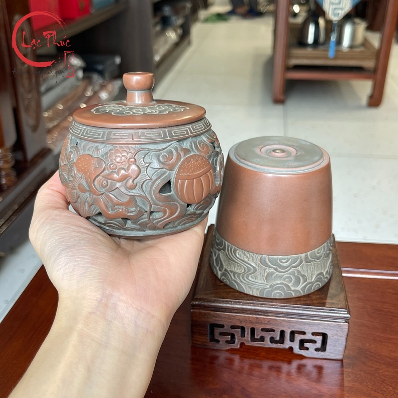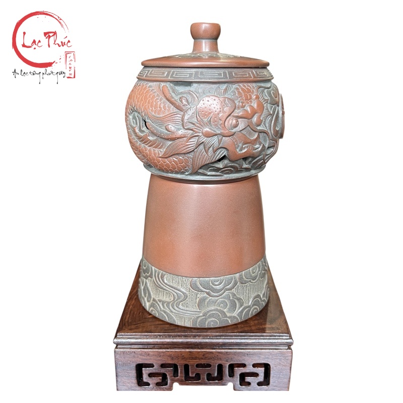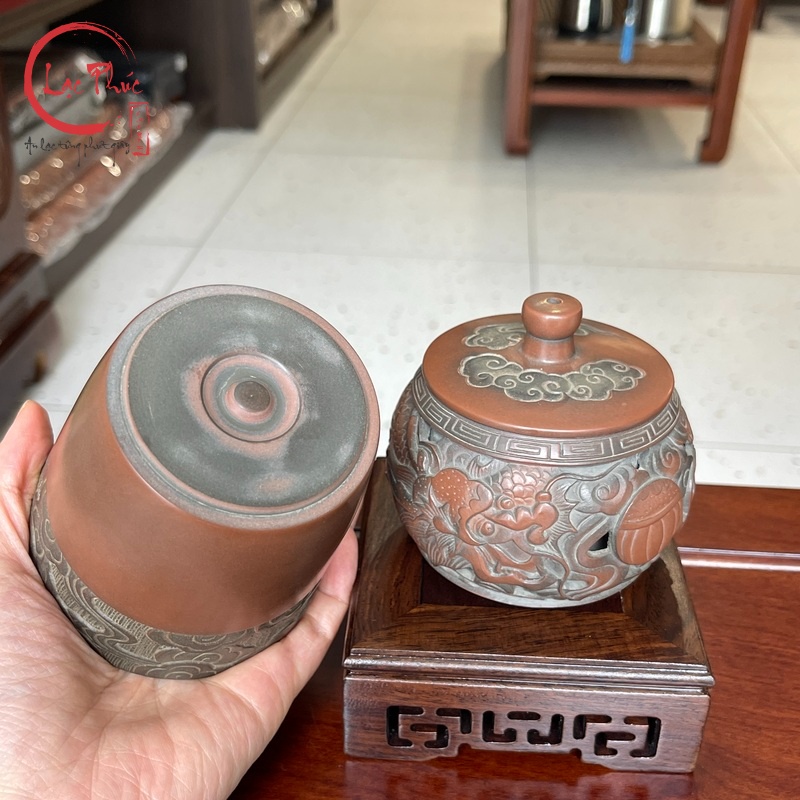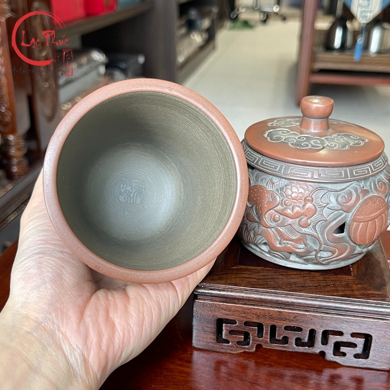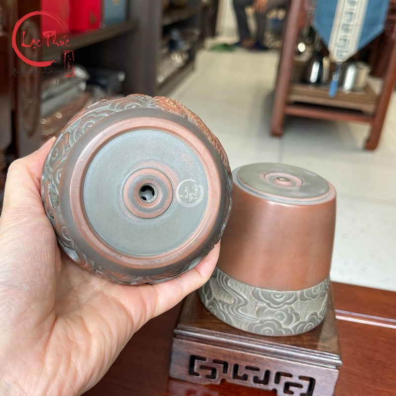 Ấm Tử Sa Tây Thi Khắc Nổi Rồng Lọc Đáy Cao Cấp 150ml ATC125 là tác phẩm hội tụ giữa dáng ấm thanh thoát và nghệ thuật chạm khắc tinh xảo. Dáng Tây Thi nhỏ gọn, mềm mại, tôn lên sự duyên dáng và hài hòa trong từng đường cong. Họa tiết rồng khắc nổi thủ công thể hiện quyền lực, may mắn và thịnh vượng, được chế tác tỉ mỉ từ đất tử sa nguyên khoáng tự nhiên giúp ấm giữ nhiệt hoàn hảo, làm trà đậm vị và lưu hương lâu. Đây là mẫu ấm mini cao cấp được Hội Quán Lạc Phúc tuyển chọn dành cho người yêu trà tinh tế.