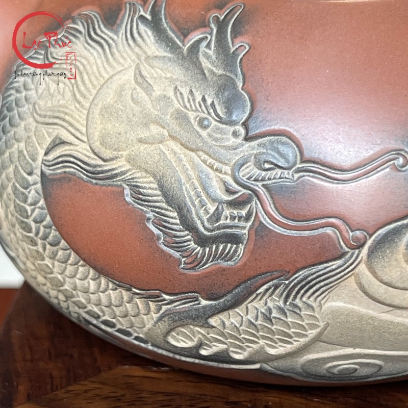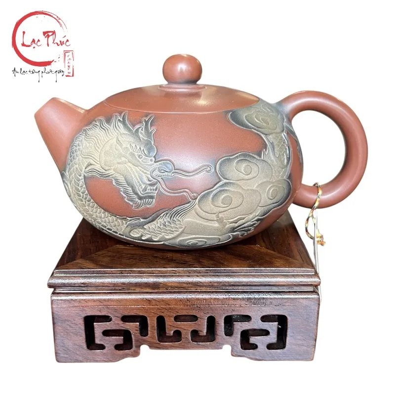 Ấm Tử Sa Tây Thi Khắc Rồng Đẹp 200ml ATC70-2 mang vẻ đẹp mềm mại và tinh tế của dáng Tây Thi cổ điển kết hợp cùng họa tiết rồng khắc thủ công tỉ mỉ, thể hiện quyền uy và may mắn. Mỗi đường nét trên thân ấm được nghệ nhân tạo tác tinh tế, từ dáng miệng cong nhẹ đến quai cầm uyển chuyển, mang đến cảm giác cân đối và hài hòa trong từng chi tiết. Đây là sản phẩm cao cấp được Hội Quán Lạc Phúc tuyển chọn dành cho người yêu trà và sưu tầm nghệ thuật.