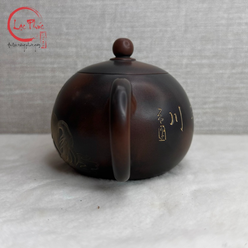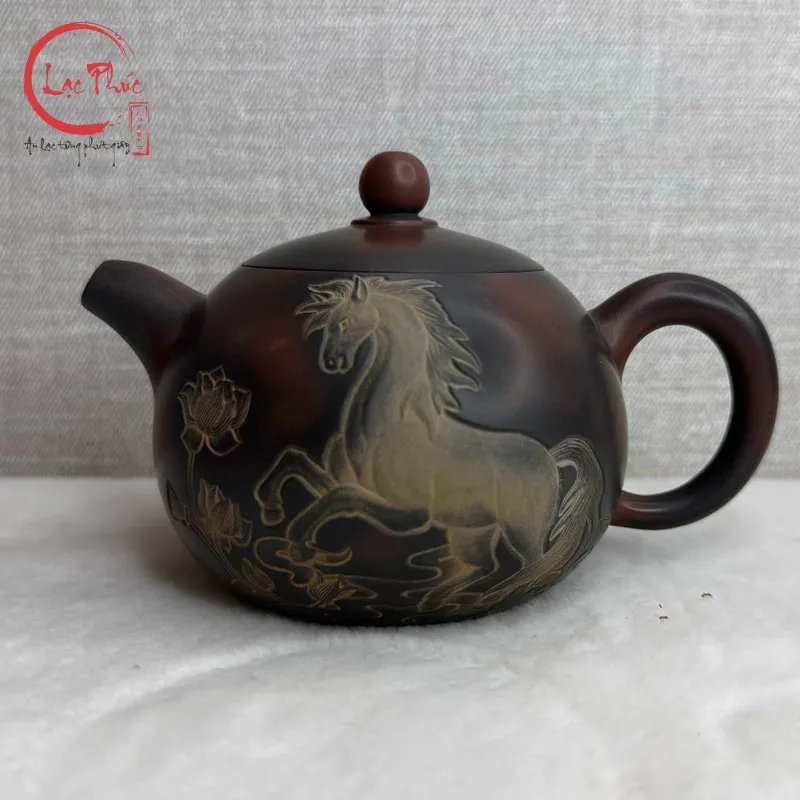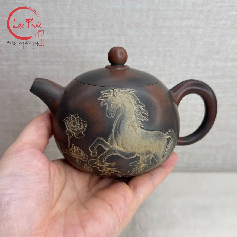 Ấm Tử Sa Tây Thi Khắc Mã Đáo Thành Công 200ml ATC115-1 là tác phẩm hội tụ ý nghĩa phong thủy tốt lành và nét tinh tế trong nghệ thuật thưởng trà. Dáng Tây Thi thanh thoát, mềm mại kết hợp cùng họa tiết Mã Đáo Thành Công được khắc thủ công tỉ mỉ mang thông điệp chúc may mắn, thuận lợi và thành công. Mỗi chi tiết được nghệ nhân chăm chút tỉ mỉ từ thân ấm, nắp, đến tay cầm, tạo nên tổng thể hài hòa và sang trọng. Sản phẩm được Hội Quán Lạc Phúc tuyển chọn dành cho người yêu trà đạo và sưu tầm ấm nghệ nhân.