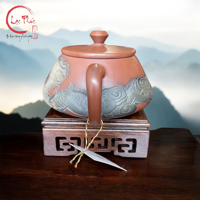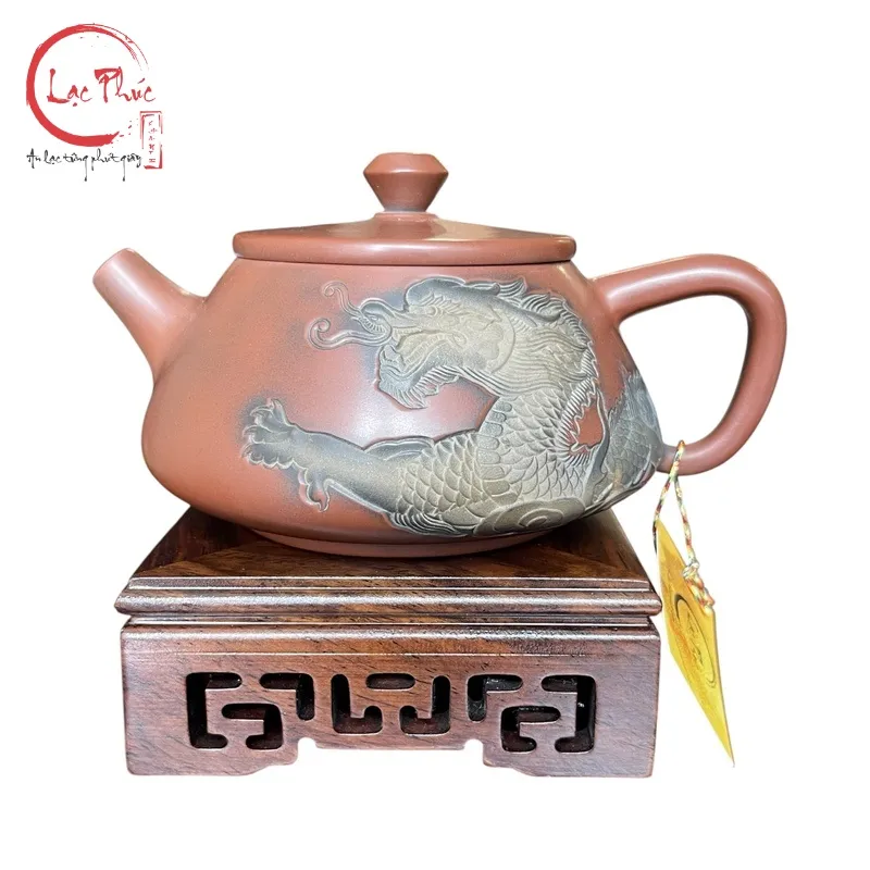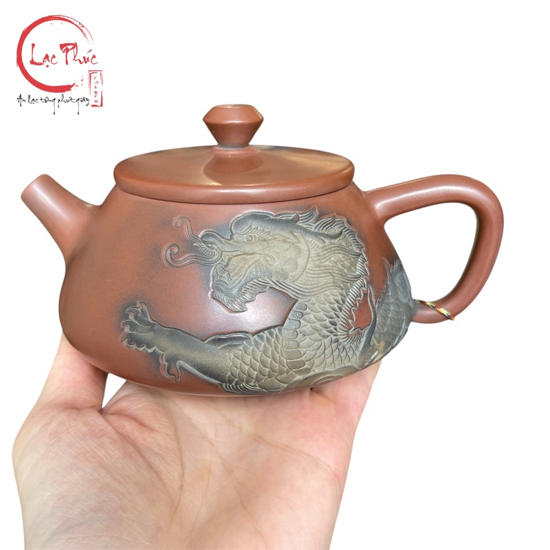 Ấm Tử Sa Thạch Biều Khắc Rồng Đẹp 200ml ATC77-2 là tác phẩm hội tụ giữa kỹ thuật tạo hình tinh xảo và ý nghĩa phong thủy sâu sắc. Dáng Thạch Biều vững chãi, mang nét cổ điển và cân đối trong từng đường cong. Họa tiết rồng khắc thủ công nổi được chạm trổ tỉ mỉ thể hiện sức mạnh, thịnh vượng và uy nghi. Mỗi chi tiết của ấm đều được nghệ nhân chăm chút cẩn thận nhằm mang đến sự hài hòa giữa thẩm mỹ và công năng, xứng đáng là món sưu tầm quý trong bộ sưu tập của người yêu trà.