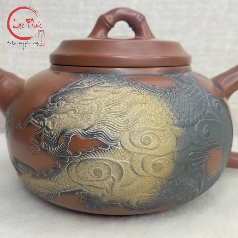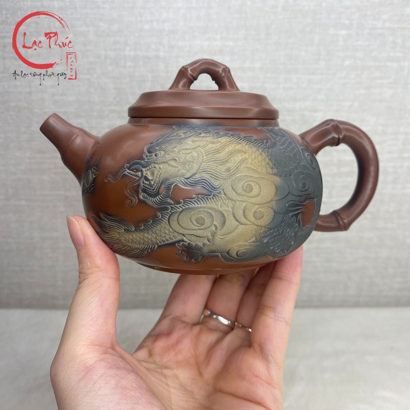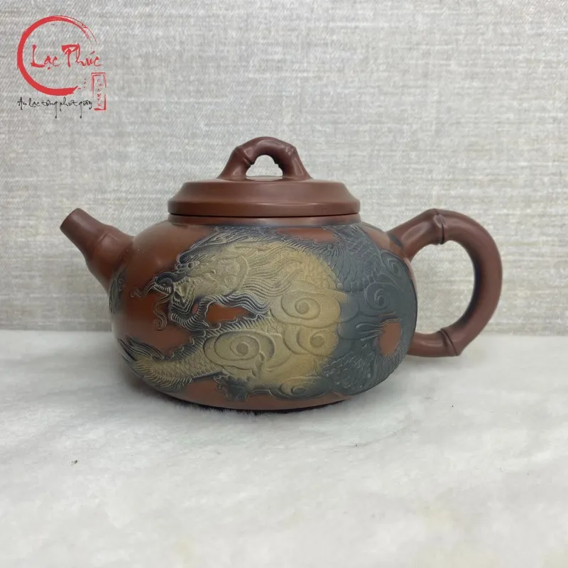 Ấm Tử Sa Trúc Đoạn Khắc Thiên Long Đẹp 300ml ATC112-2 là tác phẩm hội tụ tinh hoa nghệ thuật gốm tử sa truyền thống với phong cách tạo hình mạnh mẽ và sang trọng. Dáng Trúc Đoạn tượng trưng cho chính trực và kiên định, kết hợp cùng họa tiết Thiên Long khắc nổi thủ công thể hiện quyền uy và thịnh vượng. Mỗi đường nét được nghệ nhân chế tác tỉ mỉ tạo nên sự cân đối hài hòa giữa vẻ đẹp cổ điển và công năng hoàn hảo, được Hội Quán Lạc Phúc tuyển chọn dành cho người yêu trà đạo tinh tế.