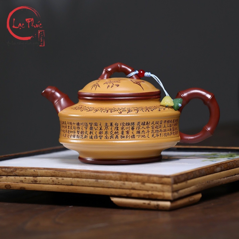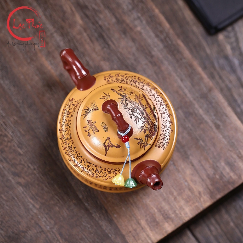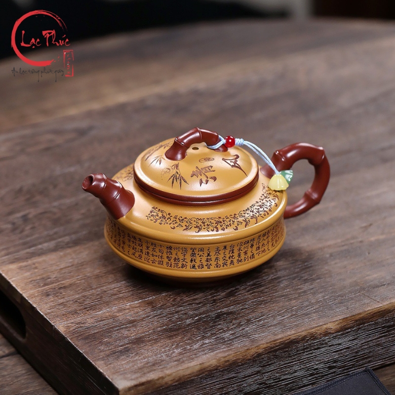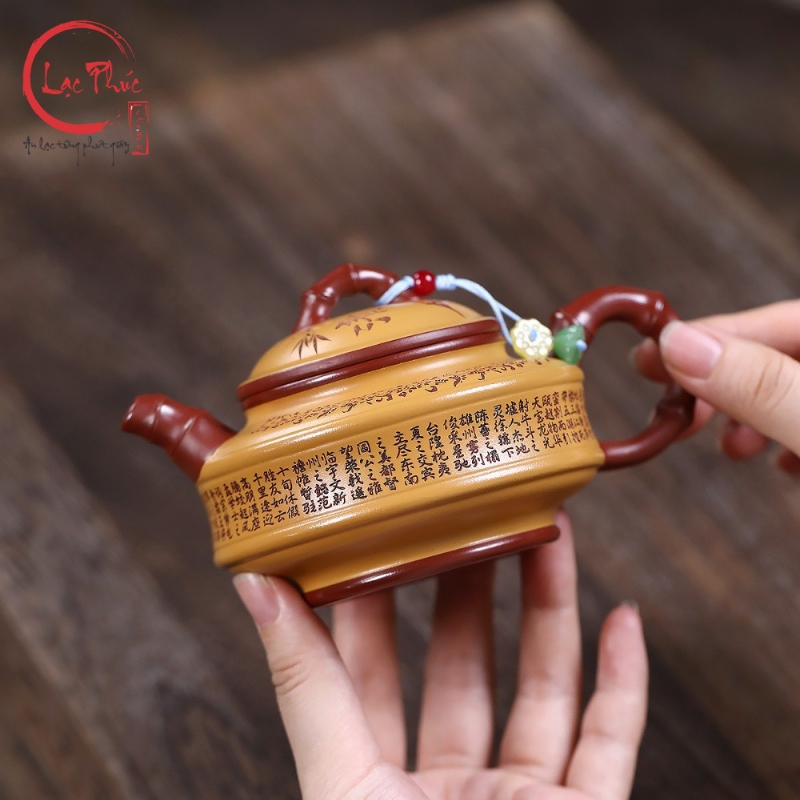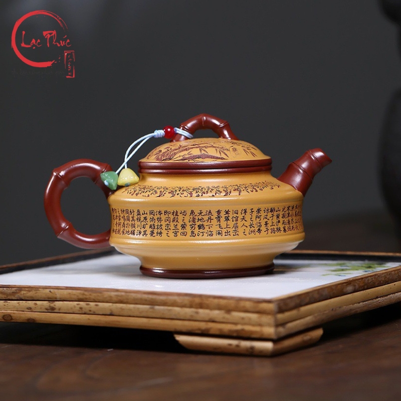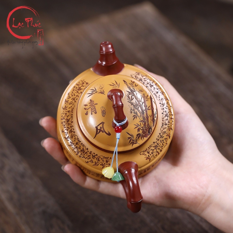 Ấm tử sa trúc đoạn tử gia nê khắc trúc đẹp 220ml ATS483-1 là mẫu ấm mang tinh thần thanh cao và chính trực của hình tượng trúc trong văn hóa phương Đông. Tạo hình trúc đoạn khỏe khoắn, cân đối kết hợp chất tử gia nê trầm ấm cho cảm giác chắc tay và ổn định nhiệt khi pha trà. Toàn thân ấm được khắc trúc thủ công với đường nét mềm mà dứt khoát, tạo chiều sâu thẩm mỹ và sự hài hòa tổng thể. Đây là lựa chọn phù hợp cho người yêu trà chuộng vẻ đẹp mộc mạc, tinh tế và công năng bền bỉ, được Hội Quán Lạc Phúc tuyển chọn.