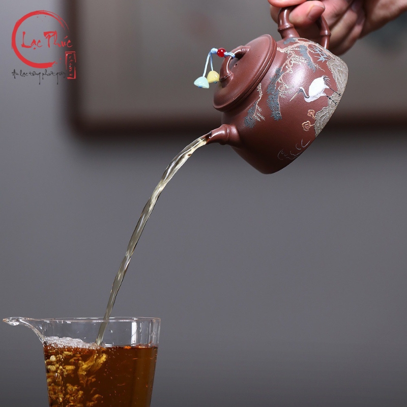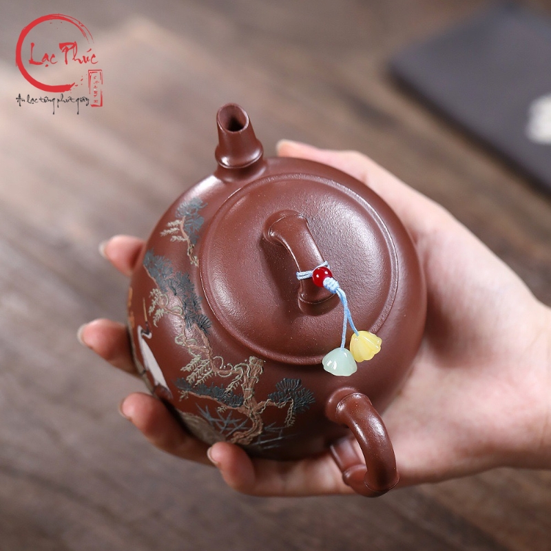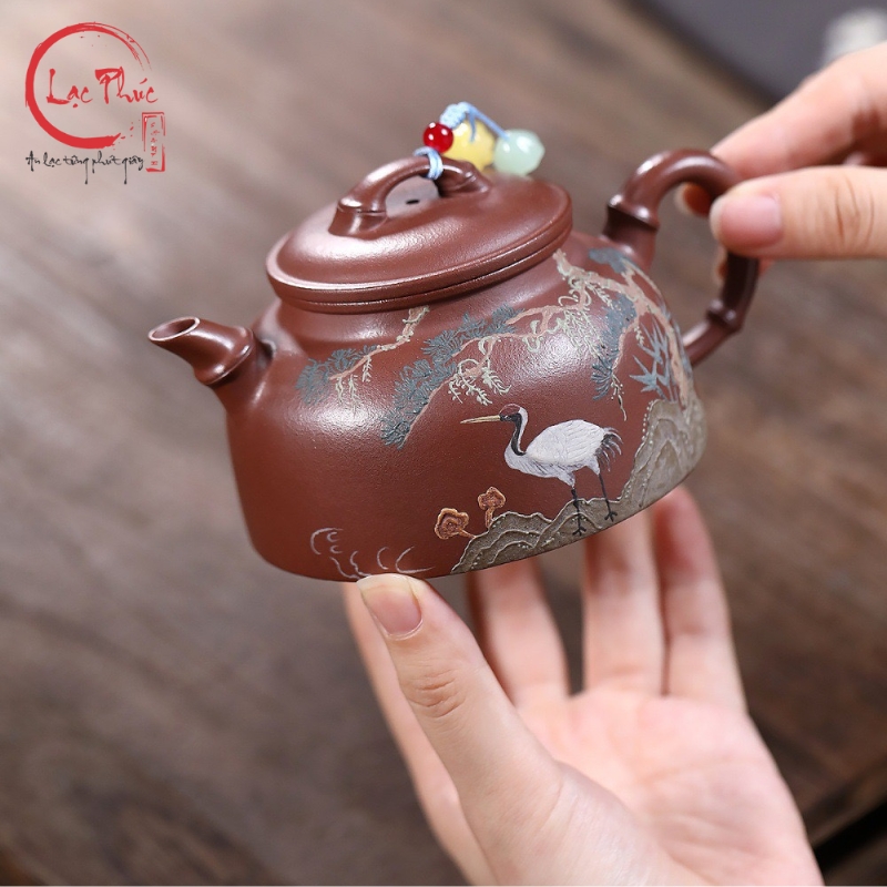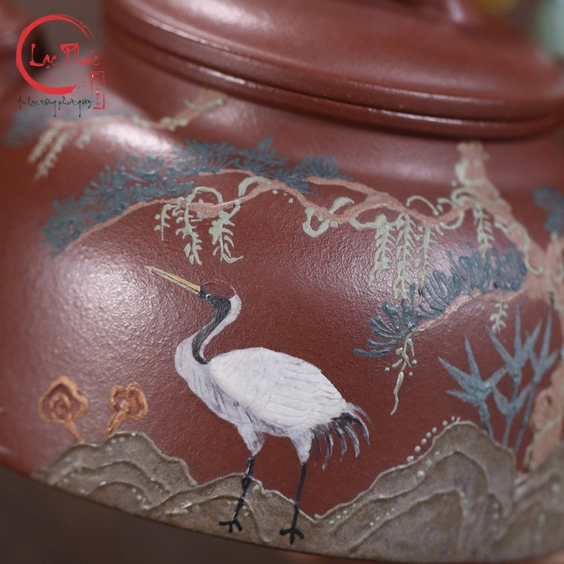 Ấm tử sa trúc đoạn tử gia nê vẽ hạc 220ml ATS489-1 là mẫu ấm mang tinh thần thanh cao của hình tượng trúc kết hợp nét an nhiên của chim hạc trong mỹ học trà đạo. Dáng trúc đoạn khỏe khoắn, thân ấm cân đối tạo cảm giác chắc tay khi rót. Nền đất tử gia nê nâu trầm làm nổi bật họa tiết hạc vẽ tay tinh tế, bố cục thoáng đạt, gợi sự trường thọ và tĩnh tại. Sản phẩm được Hội quán Lạc Phúc tuyển chọn và nhập khẩu trực tiếp từ Trung Quốc, phù hợp cho người yêu trà chuộng vẻ đẹp mộc mạc nhưng giàu ý nghĩa.