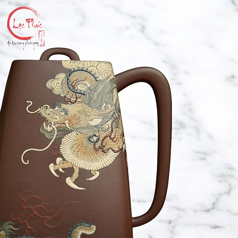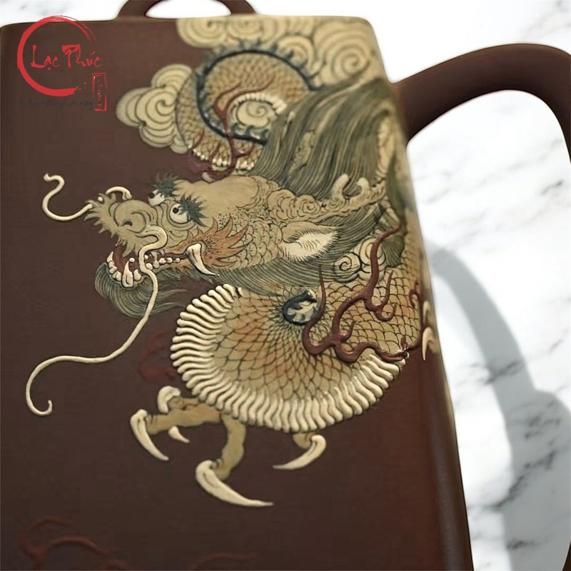 Ấm tử sa vân đỉnh tứ phương Sa Hải Du Long khoán đế tào thanh 580ml ATS462