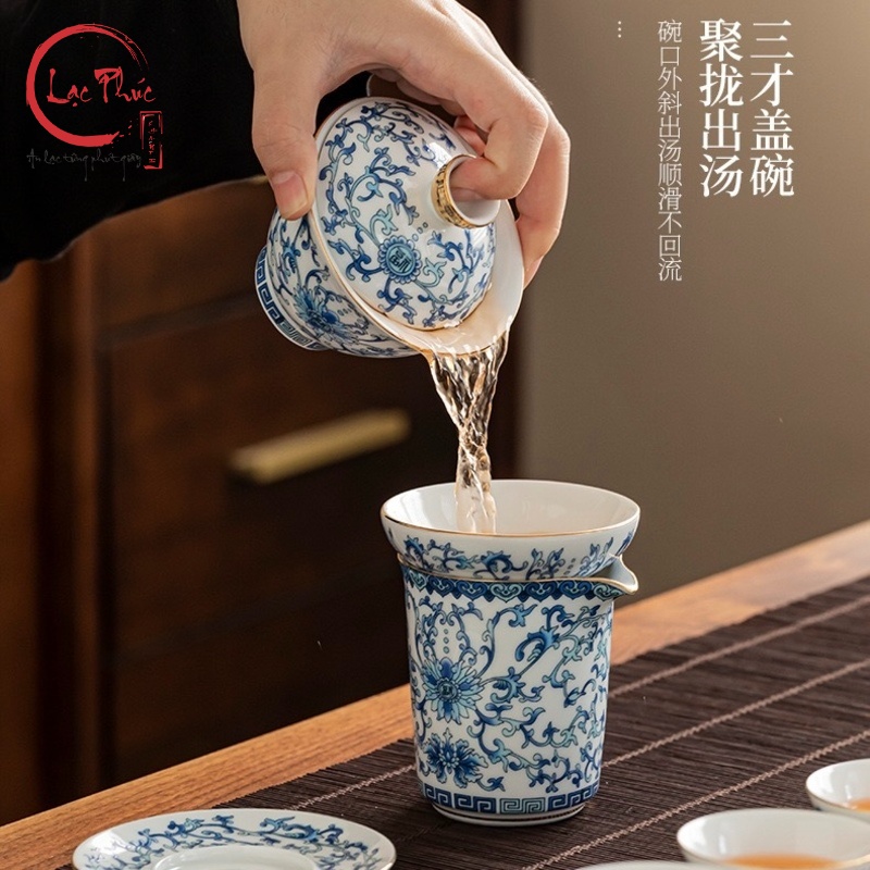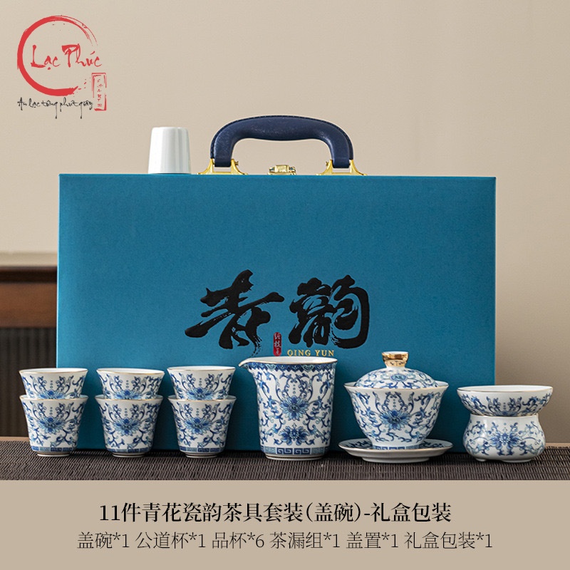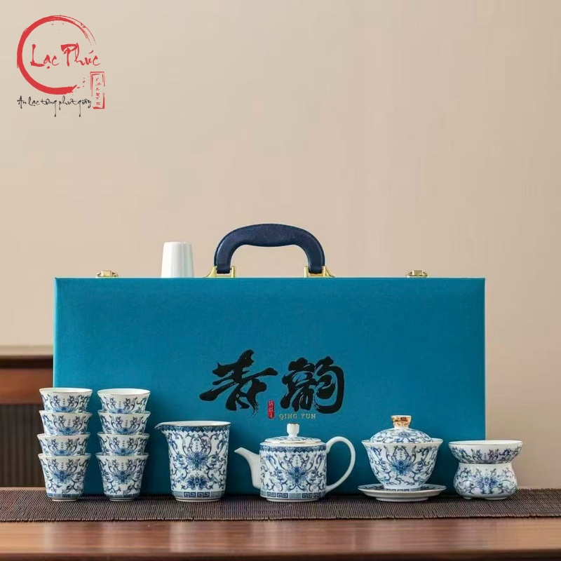 Bộ ấm trà sứ Cảnh Đức cao cấp 14 món vali BAT03-1 là lựa chọn lý tưởng cho những ai yêu thích phong cách trà đạo truyền thống, đề cao tính thẩm mỹ và sự chỉn chu trong không gian thưởng trà. Bộ trà được chế tác từ sứ trắng cao cấp Cảnh Đức Trấn, nổi bật với hoa văn lam cổ điển vẽ tinh tế, mang nét đẹp trang nhã và bền màu theo thời gian. Thiết kế đầy đủ phụ kiện, sắp xếp trong vali đựng cao cấp giúp bộ trà vừa tiện dụng khi sử dụng, vừa phù hợp làm quà tặng sang trọng cho đối tác, người thân hoặc trưng bày trong không gian trà thất.