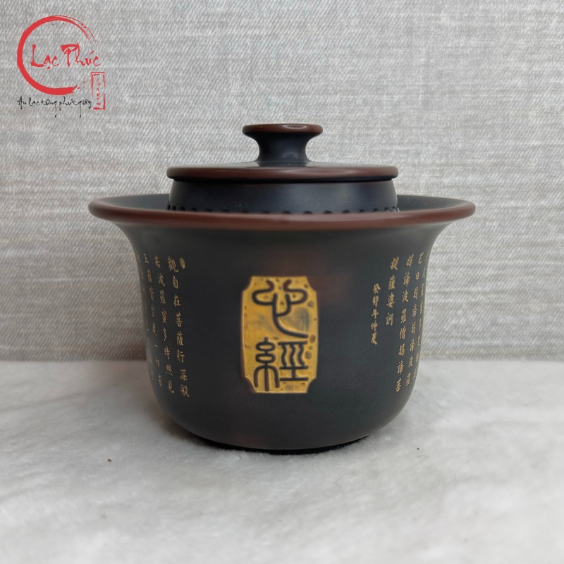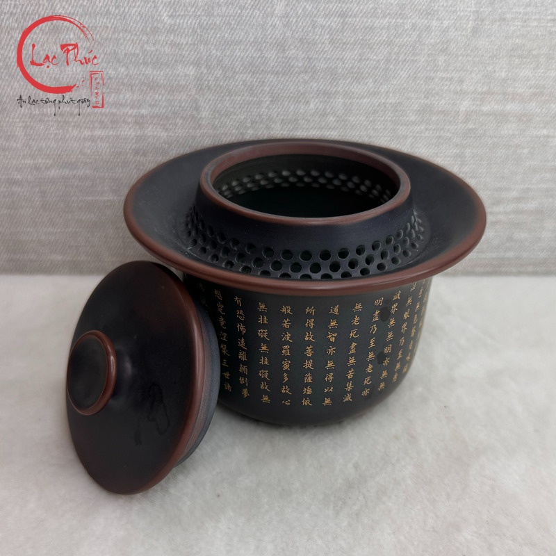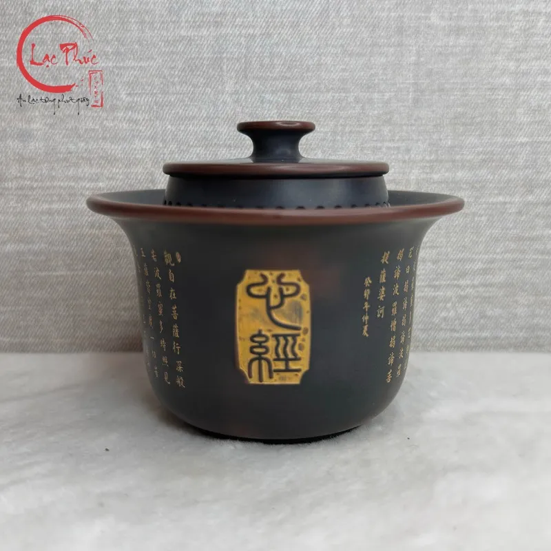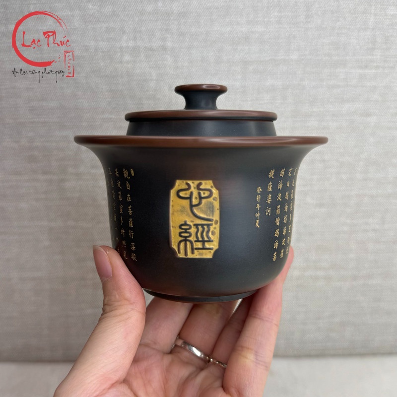 Chén Khải Tử Sa Cao Cấp CK04 là tác phẩm mang đậm dấu ấn nghệ thuật gốm tử sa truyền thống. Sản phẩm được chế tác thủ công với thân chén khắc họa hoa văn chữ kinh cổ và họa tiết thư pháp dát vàng, tôn lên vẻ cổ điển và trang nhã. Được tuyển chọn và phân phối bởi Hội Quán Lạc Phúc, đây là mẫu chén tinh xảo dành cho người yêu trà đạo và sưu tầm gốm nghệ nhân.
