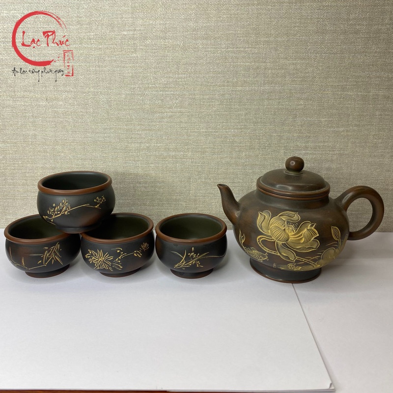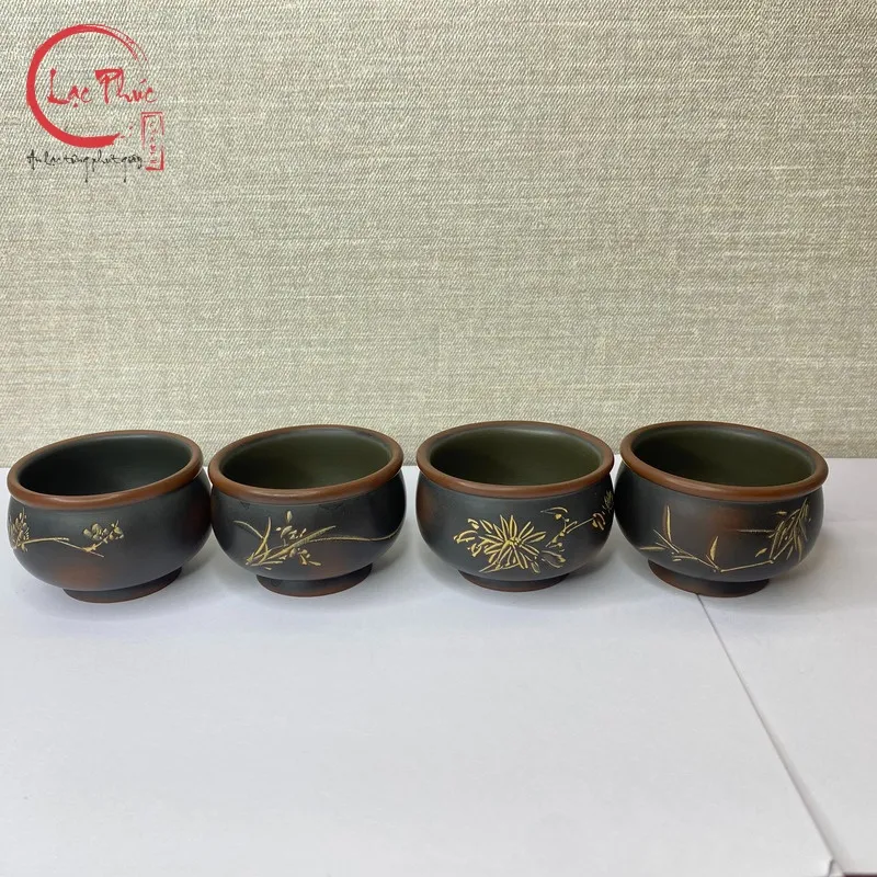Chén tử sa bộ 4 cái Mai Lan Cúc Trúc 40ml đẹp CNH26 là bộ phụ kiện thưởng trà mang vẻ đẹp thanh cao và tao nhã, lấy cảm hứng từ hình tượng tứ quý đại diện cho bốn mùa và bốn phẩm hạnh quân tử. Mỗi chén được chế tác thủ công từ đất tử sa nguyên khoáng, có độ thoáng khí tự nhiên giúp giữ hương trà và làm vị trà thêm sâu đậm. Họa tiết Mai - Lan - Cúc - Trúc khắc nổi tinh tế tạo nên chiều sâu thẩm mỹ và sự hài hòa cho không gian trà đạo. Đây là sản phẩm được Hội Quán Lạc Phúc tuyển chọn dành cho người yêu trà muốn sở hữu phụ kiện đồng bộ, sang trọng và giàu ý nghĩa.