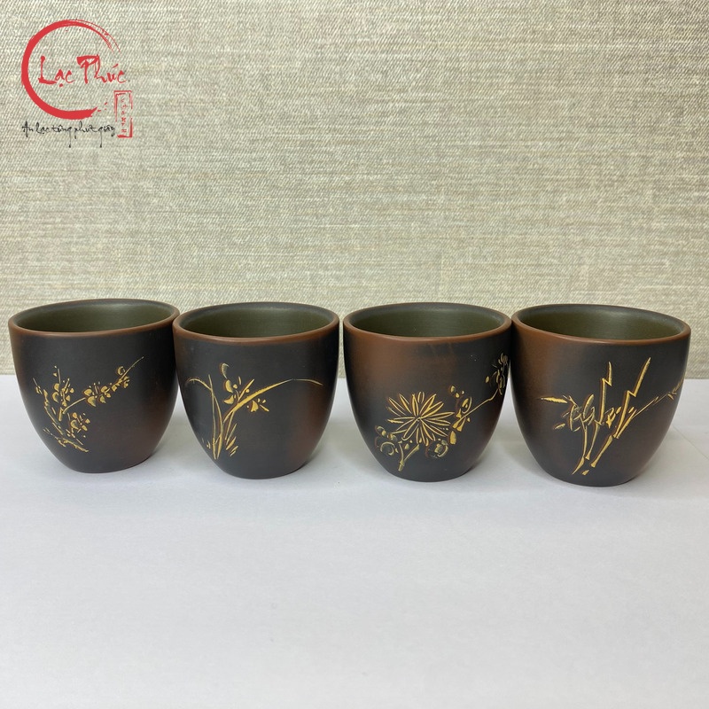 Chén tử sa bộ 4 cái Mai Lan Cúc Trúc 40ml đẹp CNH27 là bộ phụ kiện thưởng trà mang ý nghĩa thanh cao và tĩnh tại, được chế tác thủ công tỉ mỉ từ đất tử sa nguyên khoáng. Mỗi chén mang một họa tiết Mai - Lan - Cúc - Trúc, đại diện cho bốn mùa và bốn đức hạnh quý, tạo nên tổng thể hài hòa và sâu sắc. Với khả năng giữ hương và tôn vị trà tự nhiên, bộ chén này là lựa chọn lý tưởng cho những buổi thưởng trà tinh tế và đồng bộ hoàn hảo với các bộ ấm tử sa nghệ nhân do Hội Quán Lạc Phúc tuyển chọn.