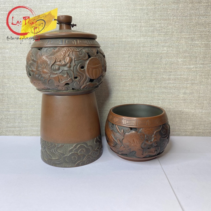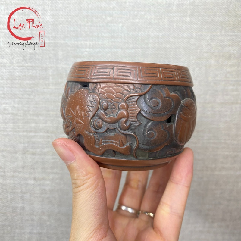 Chén tử sa chủ khắc nổi Thiên Long cao cấp 80ml CNH28 là mẫu chén mang vẻ đẹp uy nghi và đầy sức mạnh, được chế tác thủ công toàn bộ từ đất tử sa nguyên khoáng. Họa tiết Thiên Long khắc nổi tượng trưng cho quyền lực, sự thịnh vượng và cát tường trong văn hóa phương Đông. Với dung tích 80ml, chén có độ sâu vừa phải giúp giữ hương trà lâu hơn và làm vị trà thêm đậm hậu. Sản phẩm do Hội Quán Lạc Phúc tuyển chọn dành cho người yêu trà và sưu tầm các phụ kiện trà đạo mang giá trị nghệ thuật cao.