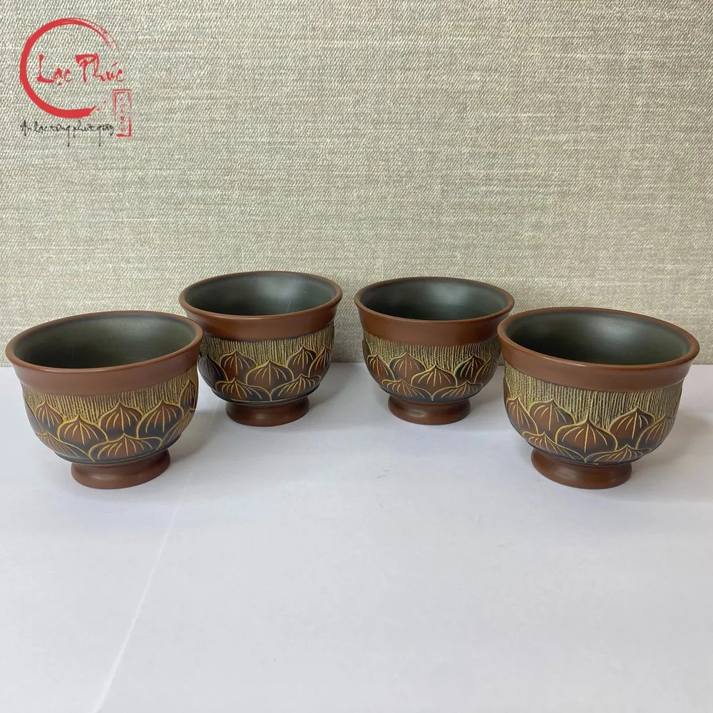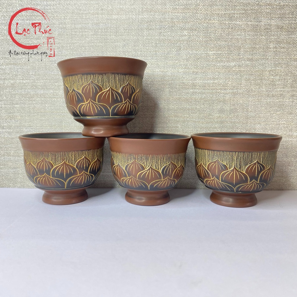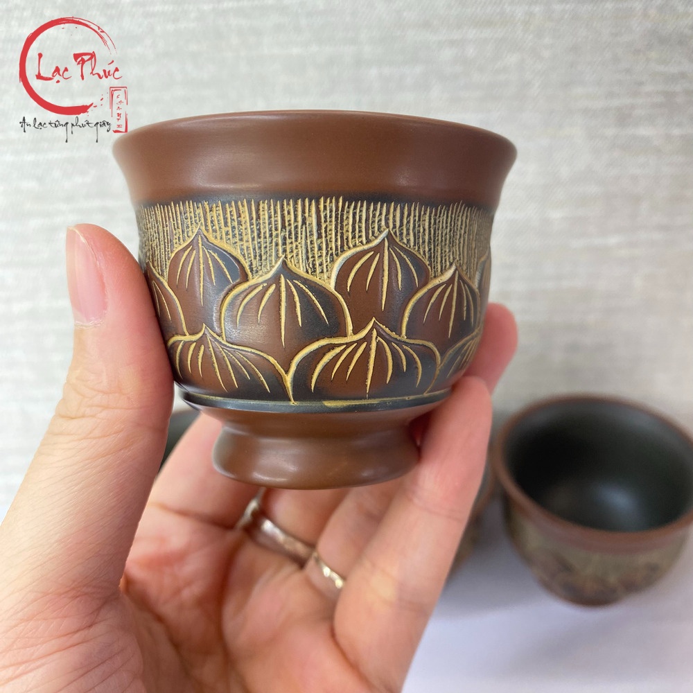 Chén Tử Sa Khắc Sen Đẹp 50ml CNH10-1 là phụ kiện thưởng trà tinh tế dành cho người yêu thích vẻ đẹp thanh tịnh và giản dị của hoa sen. Được chế tác thủ công từ đất tử sa nguyên khoáng, chén có độ thấm khí nhẹ giúp giữ hương và tôn vị trà một cách tự nhiên. Họa tiết hoa sen khắc nổi mềm mại được nghệ nhân thực hiện tỉ mỉ tạo nên chiều sâu thẩm mỹ và phong thái an nhiên trong từng chi tiết. Sản phẩm được Hội Quán Lạc Phúc tuyển chọn để đồng bộ hoàn hảo với các bộ ấm tử sa nghệ nhân hoặc sử dụng độc lập như một vật phẩm thưởng trà cao cấp.