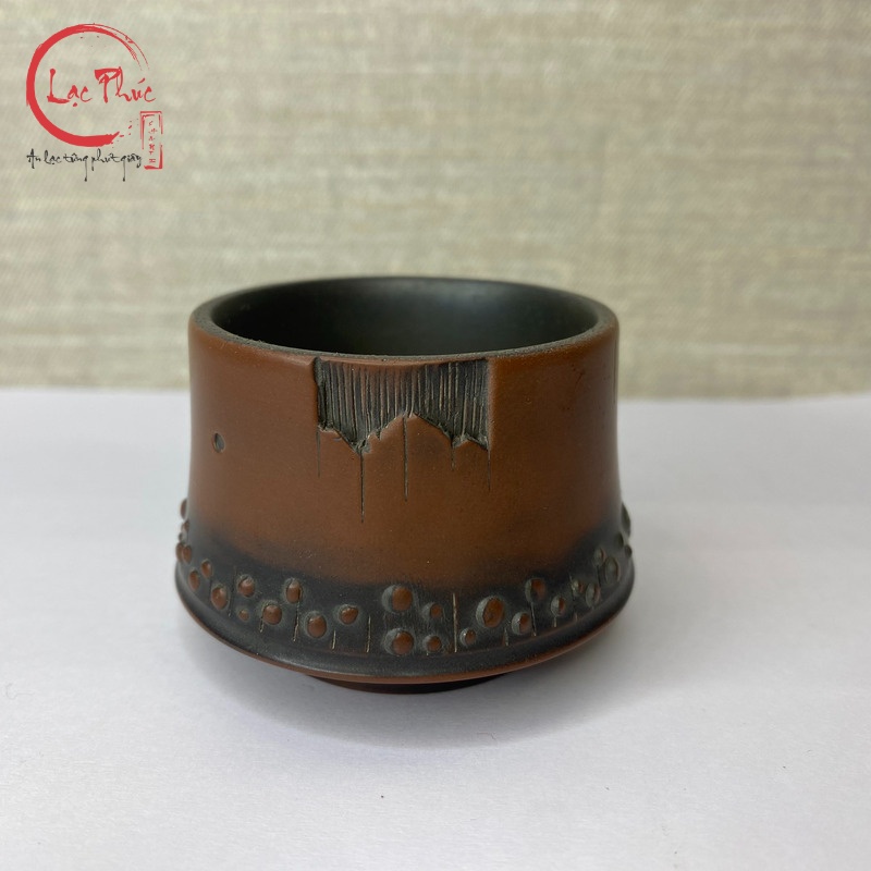 Chén tử sa trúc đoạn 40ml cao cấp CNH29 là phụ kiện thưởng trà mang tinh thần thanh cao của biểu tượng trúc trong văn hóa phương Đông. Được chế tác thủ công hoàn toàn từ đất tử sa nguyên khoáng, chén có độ thoáng khí tự nhiên giúp giữ hương trà và làm vị trà thêm đậm hậu. Họa tiết trúc đoạn được tạo hình tinh tế, mang ý nghĩa vững chãi, chính trực và trường cửu. Đây là mẫu chén do Hội Quán Lạc Phúc tuyển chọn dành cho người yêu trà đạo muốn sở hữu phụ kiện nhỏ gọn nhưng sang trọng và giàu giá trị thưởng trà.