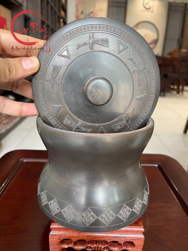 Hũ Trà Tử Sa Trống Đồng Cao Cấp 700ml HT06 là tác phẩm mang đậm giá trị văn hóa và nghệ thuật, được chế tác thủ công toàn bộ bởi nghệ nhân Trương Chấn Hòa – người nổi tiếng với kỹ thuật tạo hình tinh tế trên đất tử sa. Sản phẩm sử dụng chất liệu khoáng Nê Hưng nguyên khoáng, bề mặt mịn tự nhiên, có khả năng giữ hương trà tối ưu. Họa tiết trống đồng khắc nổi thể hiện nét đẹp văn hóa Việt kết hợp tinh thần trà đạo phương Đông, được Hội Quán Lạc Phúc giới thiệu như món quà trang nhã và giá trị.
