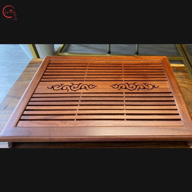 Khay trà gỗ từ Hội Quán Lạc Phúc không chỉ đẹp mắt mà còn được làm từ những loại gỗ tự nhiên cao cấp, giúp mang lại vẻ sang trọng và đẳng cấp cho không gian trà. Ngoài ra, khay trà gỗ của Hội Quán Lạc Phúc còn được chế tác tỉ mỉ và tinh xảo, từng chi tiết được gia công cẩn thận, tạo nên sự hoàn thiện và độ bền cao.